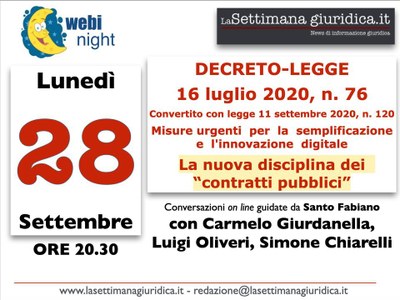 28/09/2020 - WEBINAR (gratuito): la nuova disciplina degli appalti pubblici dopo la conversione del DL76/2020