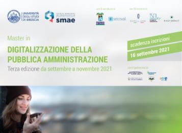 Martedì 27 luglio è stata presentata la 3° edizione del corso universitario DIGITALIZZAZIONE della PUBBLICA AMMINISTRAZIONE, organizzato dalla School of Management and Advanced Education (SMAE) dell'Università degli Studi di Brescia in collaborazione con la Provincia di Brescia e quest'anno, anche dalla società Secoval.